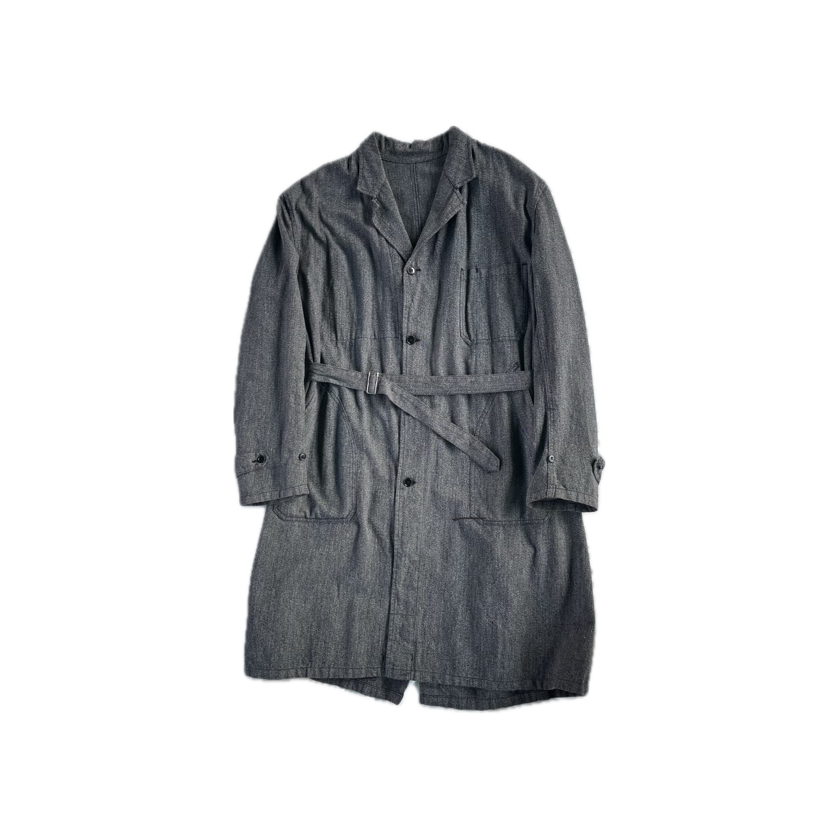 当時のヨーロッパの方たちは外出する際の日常着でもスカーフやネクタイを巻いたり、今で言うきちんとした服装をしていたそうで、画家や画家を志していた学生みたいな方でも絵を描く際はそのきちんとした服装に汚れが付かないように、このアトリエコート等を着ていたそうです。